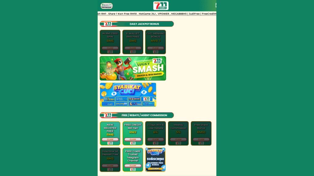 Di 711Cuci Malaysia, setiap pemain menikmati bonus terbesar, free credit harian, cashback mingguan dan rebat eksklusif. Fokus kami: lebih modal, lebih peluang menang, lebih banyak CUCI.